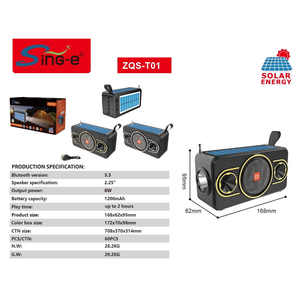 No outlet? لا مشكلة. ال Sing-e zqs المتحدث features a double-sided solar panel
