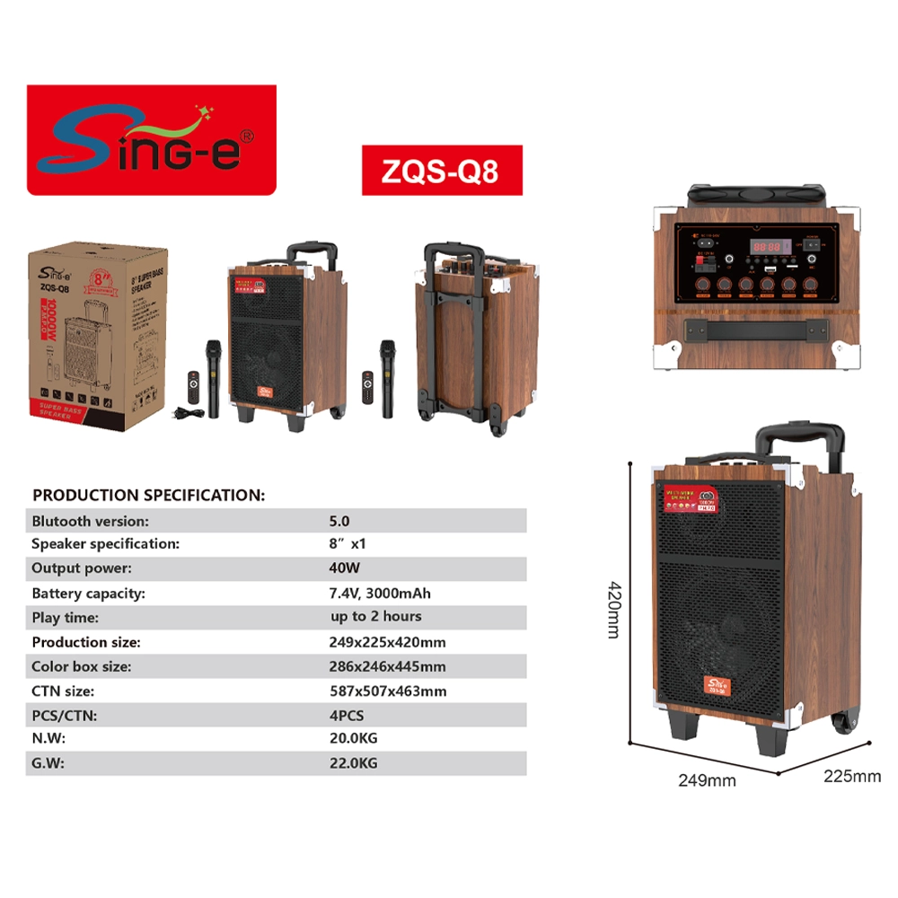 el Altavoz SING-E ZQS ofrece ruidoso, Sonido claro y de rango completo con graves profundos, sin necesidad de equipo adicional.