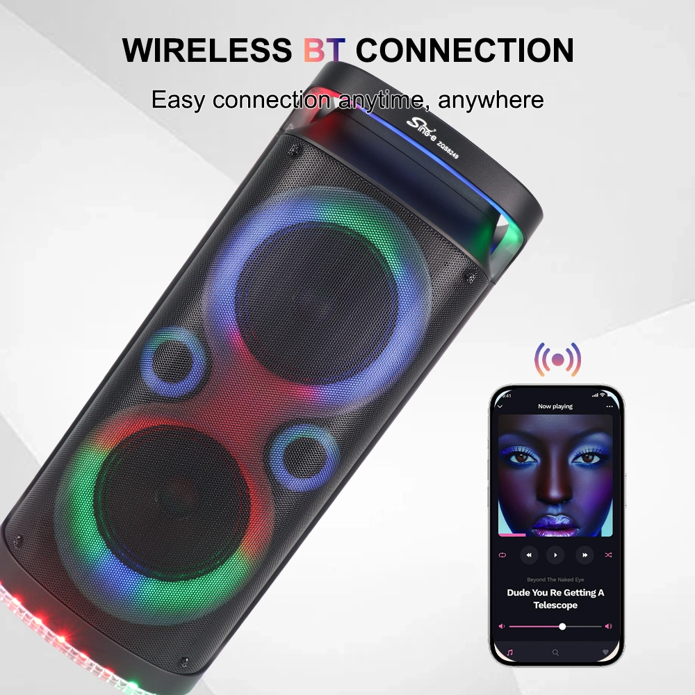 Transformez tout moment en une fête avec le Haut-parleur Sing-E ZQS - Une centrale portable combinant des basses profondes, Lumières RVB éblouissantes, et la liberté sans fil.
