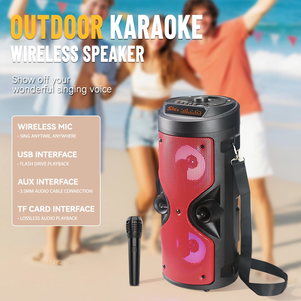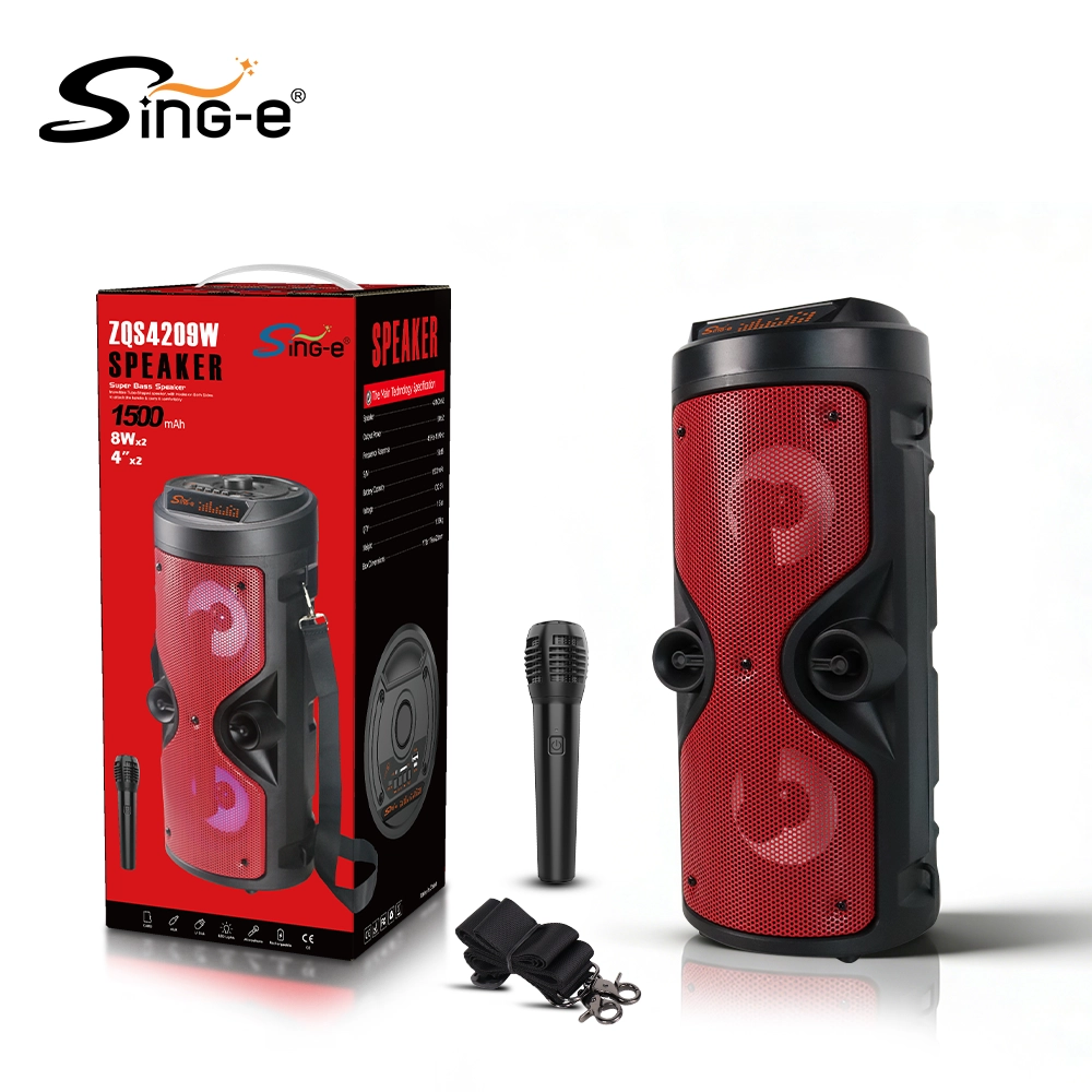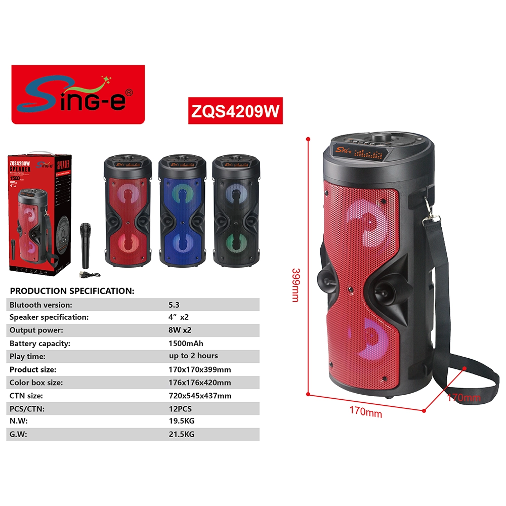 Sing anywhere with the SING-E ZQS4209W Portable Karaoke Bluetooth Speaker. Equipped with dual 4″ bass drivers, wireless microphone, Bluetooth 5.3