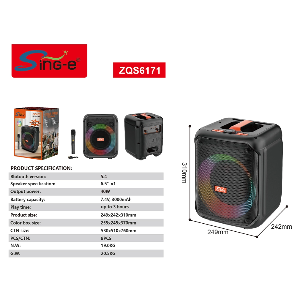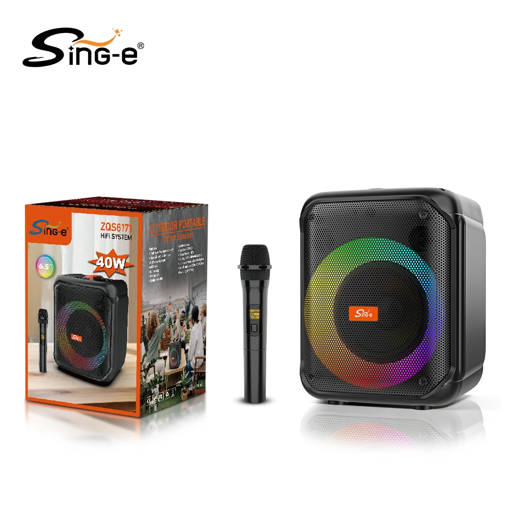 The SING-E ZQS6171 Portable Karaoke Speaker combines powerful sound, vibrant lighting, and wireless karaoke performance in one portable speaker system.