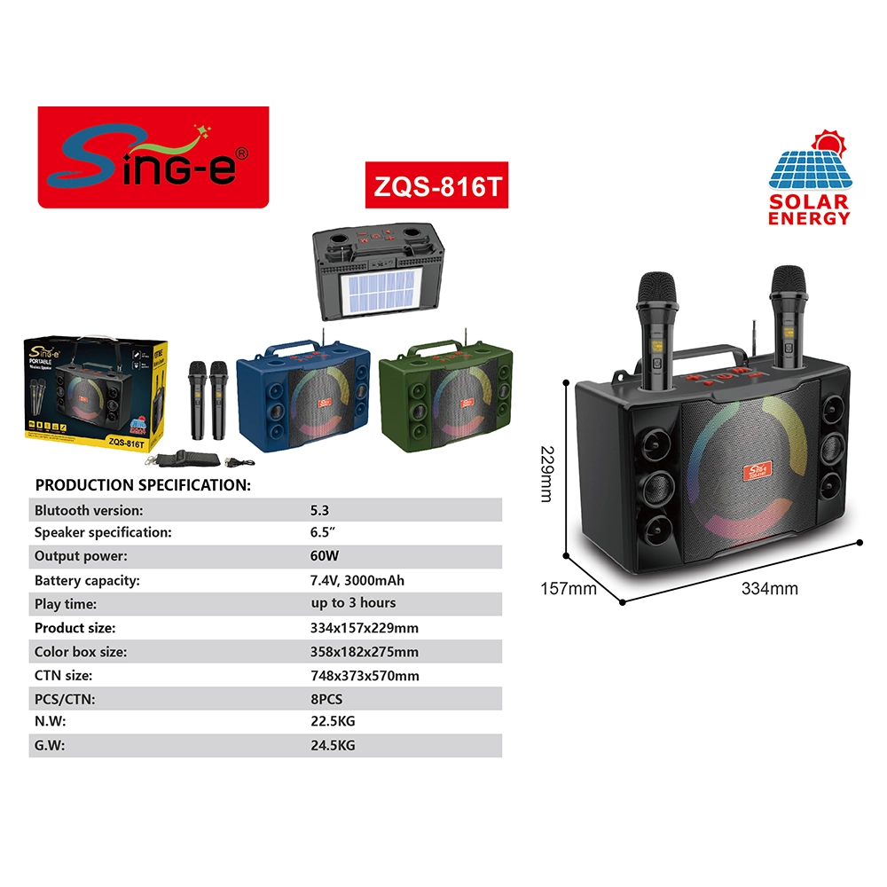 Безграничная сила, Куда бы вы ни пошли А СИНГ-Э ZQS ZQS-816T переосмысливает портативное аудио благодаря своим инновационным Фотоэлектрическая зарядка панель.