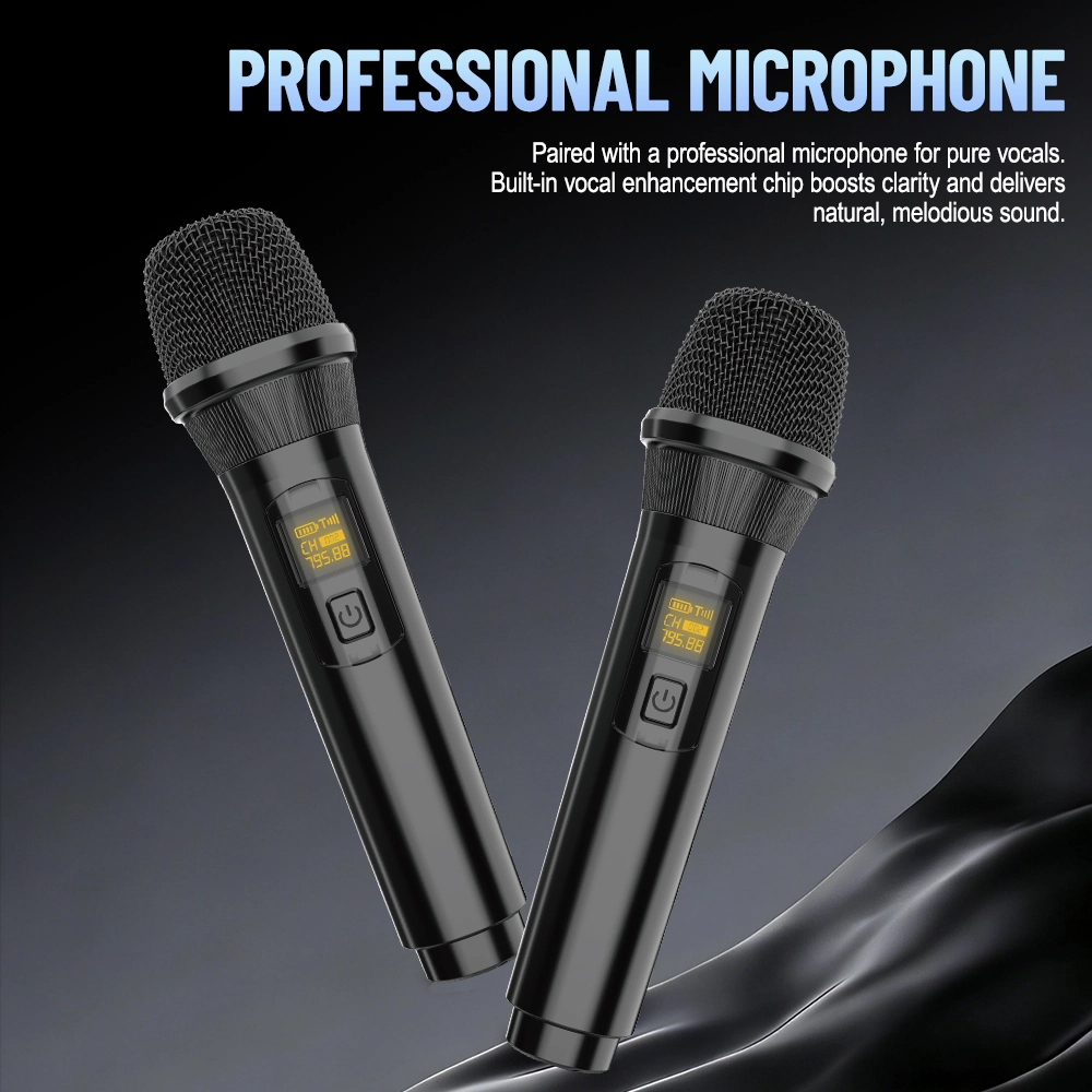 Поддержка двух микрофонов: В сочетании с двумя профессиональными микрофонами и встроенными чипами улучшения вокала для чистого, натуральный вокал.